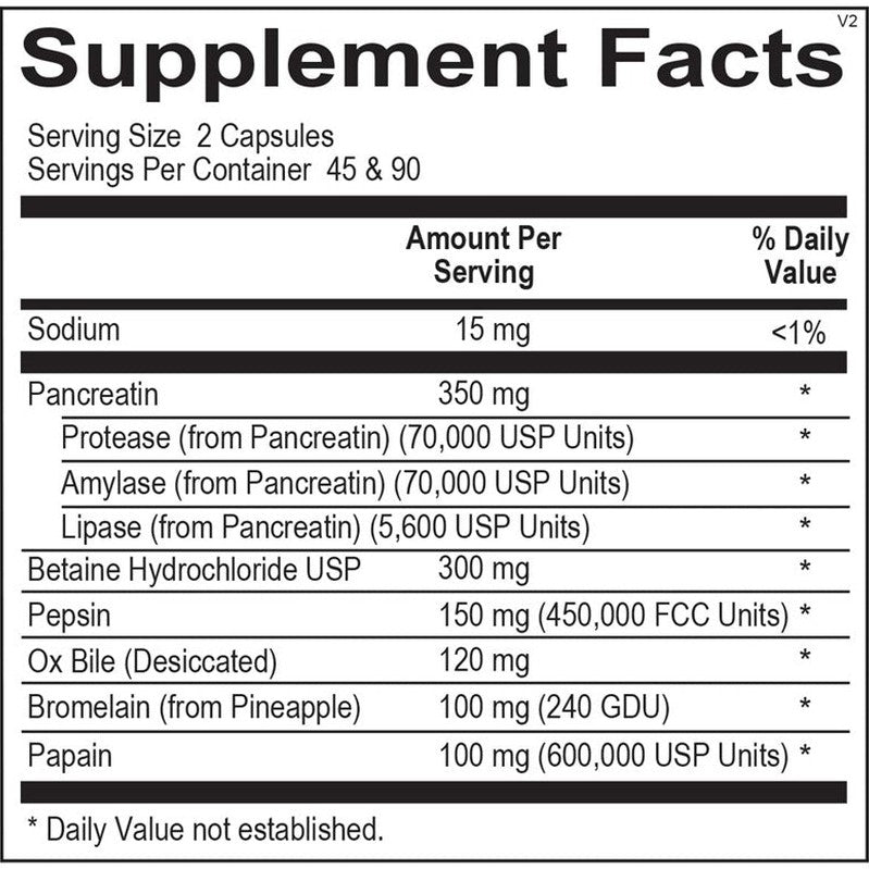 Prime Digest is a full-spectrum digestive enzyme formula that supports each phase of digestion—starting in the stomach and continuing through the small intestine. With high-potency pancreatin, betaine HCl, pepsin, ox bile, bromelain, and papain, Prime Digest helps break down proteins, fats, and carbohydrates for optimal nutrient absorption and gastrointestinal comfort.