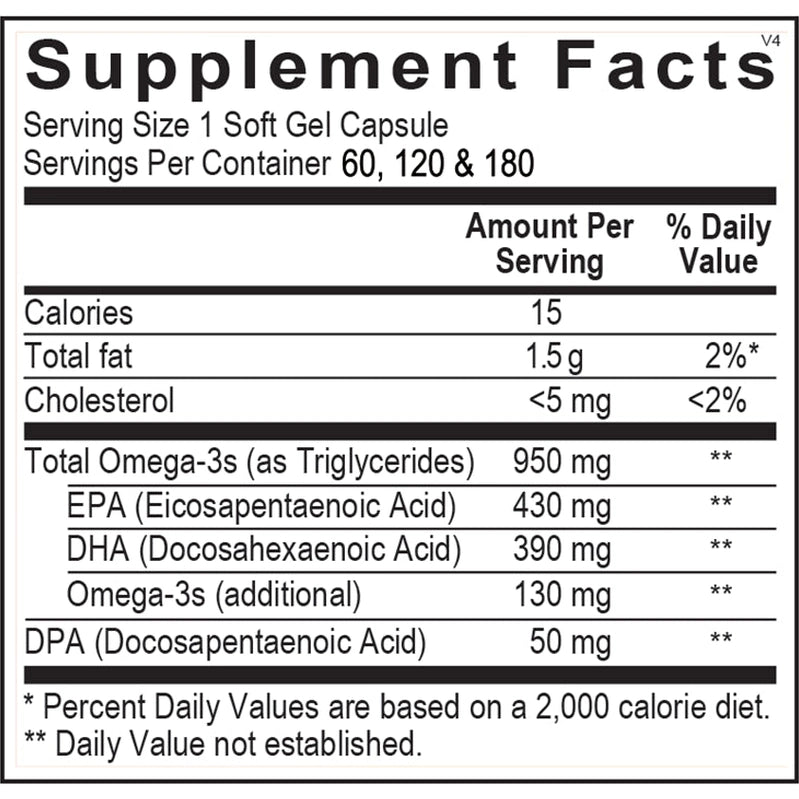 Alpha Omegas is a high-potency omega-3 fish oil supplement formulated to support heart, brain, joint, and eye health. Each soft gel delivers 820 mg of EPA, DHA, and DPA in a superior triglyceride form for optimal absorption and efficacy.