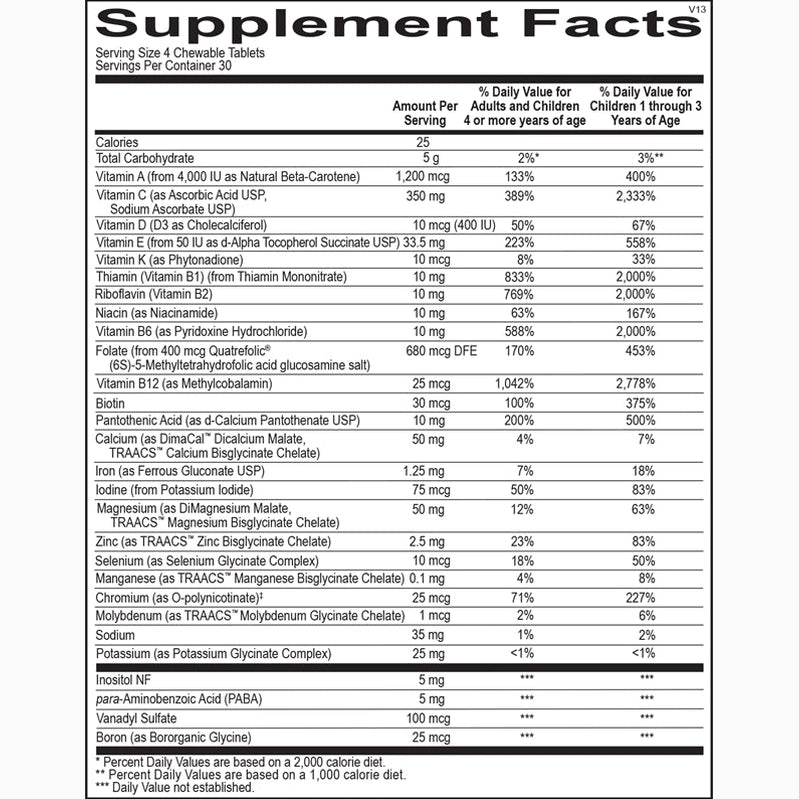 - Complete multivitamin and mineral support for growing children